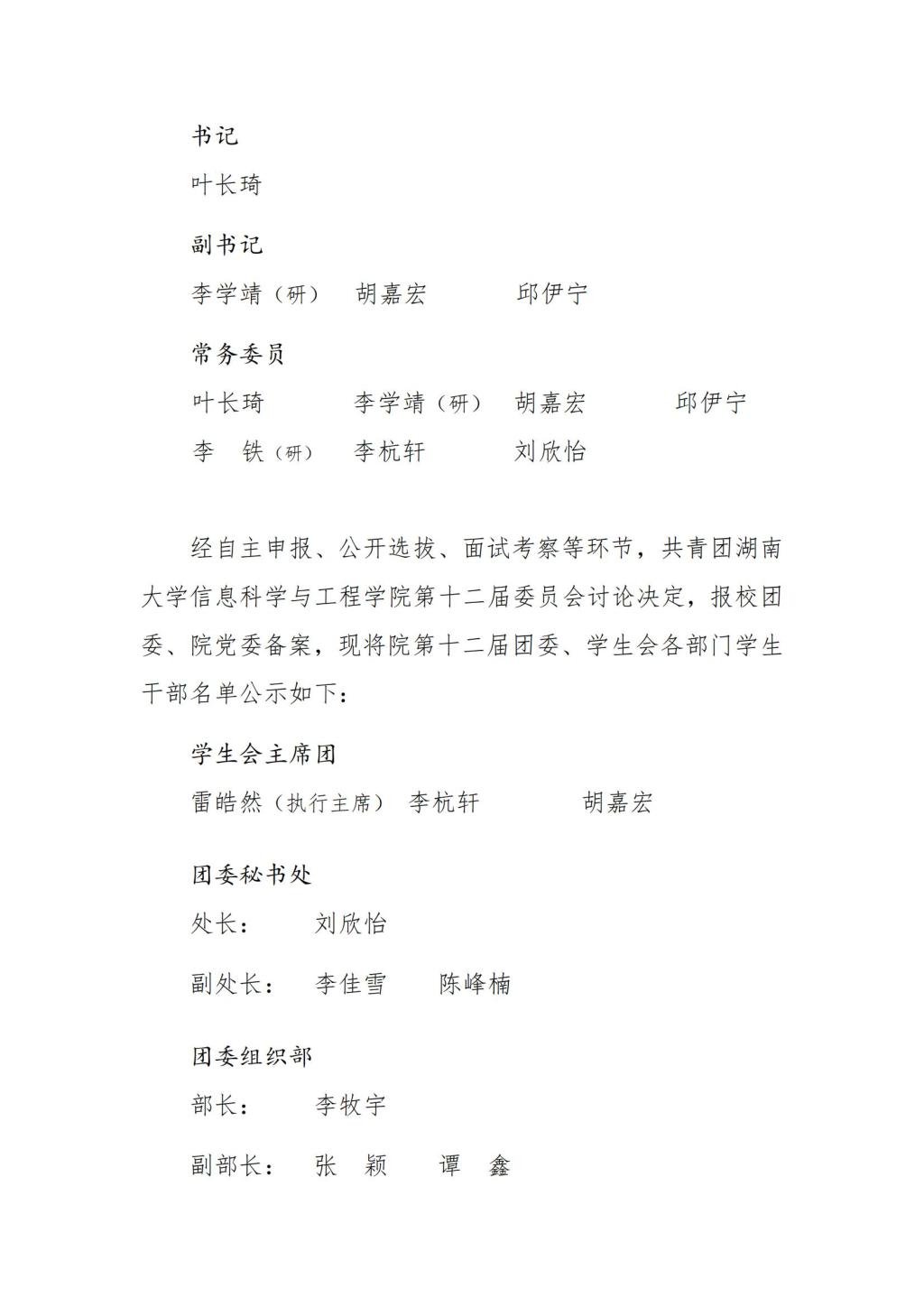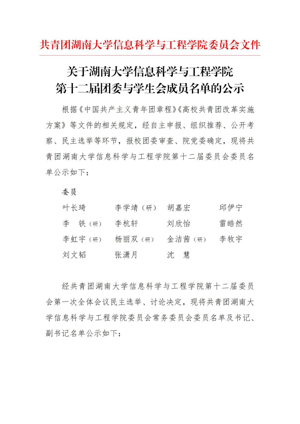 关于中文黄色网站 第十二届团委与学生会成员名单的公示
