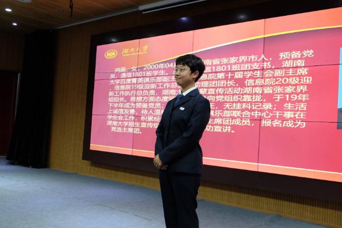 预备会议现场听取并审议通过了《筹备工作报告》《代表资格审查报告》《选举办法》,对监票、唱票及计票人名单进行落实核对。各位候选人依次进行演讲,展现自我优异的能力与风采,尽显信息院学生饱满的精神和蓬勃的朝气。会议审议通过候选人名单后,第十一届学生代表大会预备会议圆满结束。