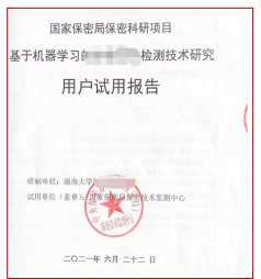 评审专家组意见一致认为:“该项目针对互联网环境下的大数据检测需求以及现有检测平台告警误报率高等问题,通过构建海量领域知识库和机器学习检测模型,研究一系列大数据保密关键技术,研制了基于机器学习的****检测系统,研究成果对于提升检测效率、降低误报率具有重要的使用价值”。