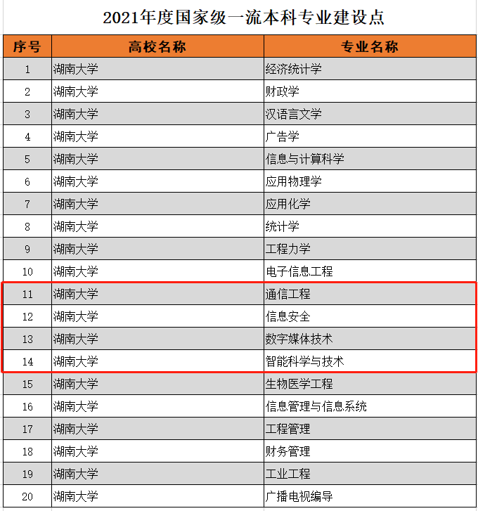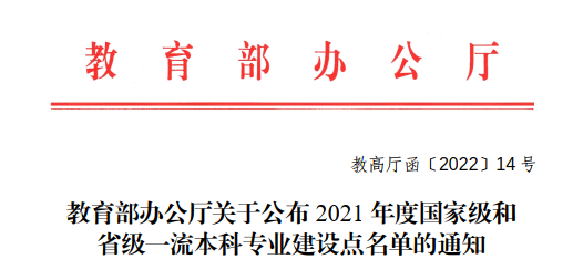 近日,教育部发布《关于公布2021年度国家级和省级一流本科专业建设点名单的通知》(教高厅函〔2022〕14号),我院通信工程、智能科学与技术、信息安全与数字媒体技术共4个专业入选。