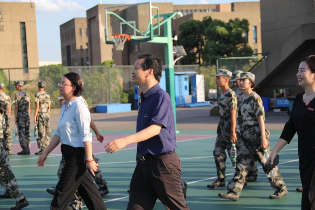 院长李肯立、院党委书记彭嘉芬、院党委副书记骆嘉伟、院党委副书记彭娜、副院长傅喜泉及新生班主任一行来到到荫马塘体育场,看望慰问军训中的新生。