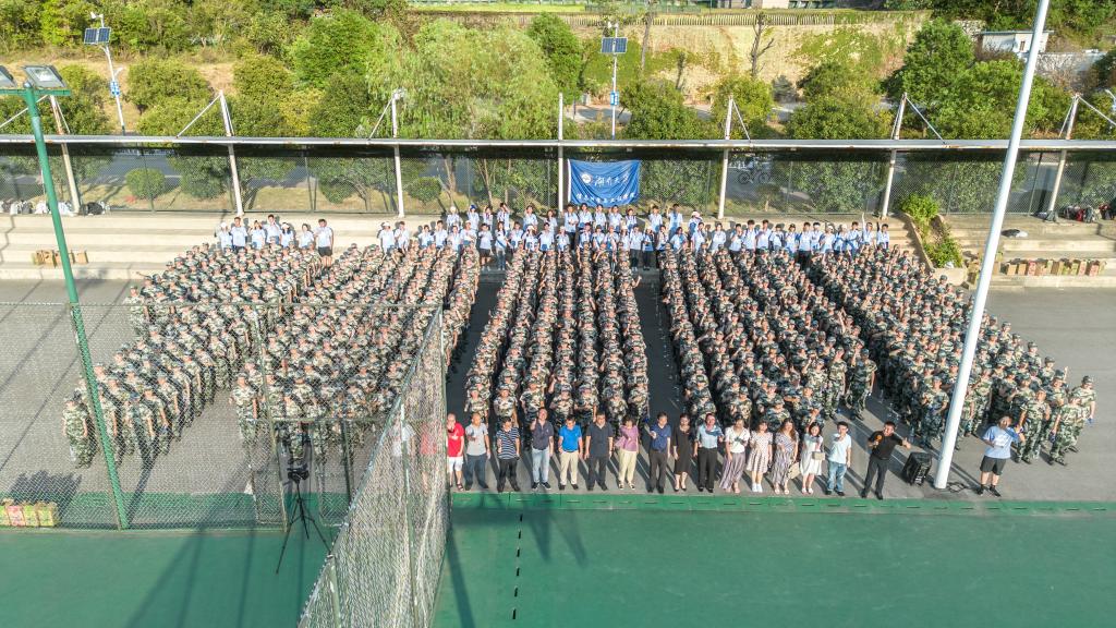 最后,在响亮的口号声中,信息院全院新生、新生助理与领导老师们完成了航拍大合照。相信短暂休息后,信息学子们将继续以良好饱满的精神状态面对军训,继续传承信息院精神,争做“时代先锋”。