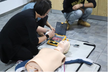 本次讲座还进行了AED实操培训,结合之前的理论铺垫,朱艳玲医生为我们演示了自动体外除颤仪AED的使用过程。朱艳玲医生为大家上了一堂理论知识丰富、操作指导性强的现场急救课,让我们受益匪浅。
