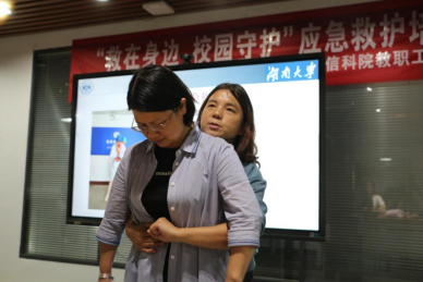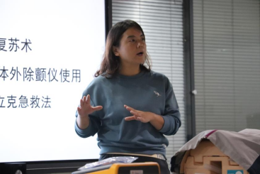 朱医生深入浅出地为我们讲解了心肺复苏术、自动体外除颤仪、海姆利克急救法的相关知识和实操要领,并进行了实际操作演示。