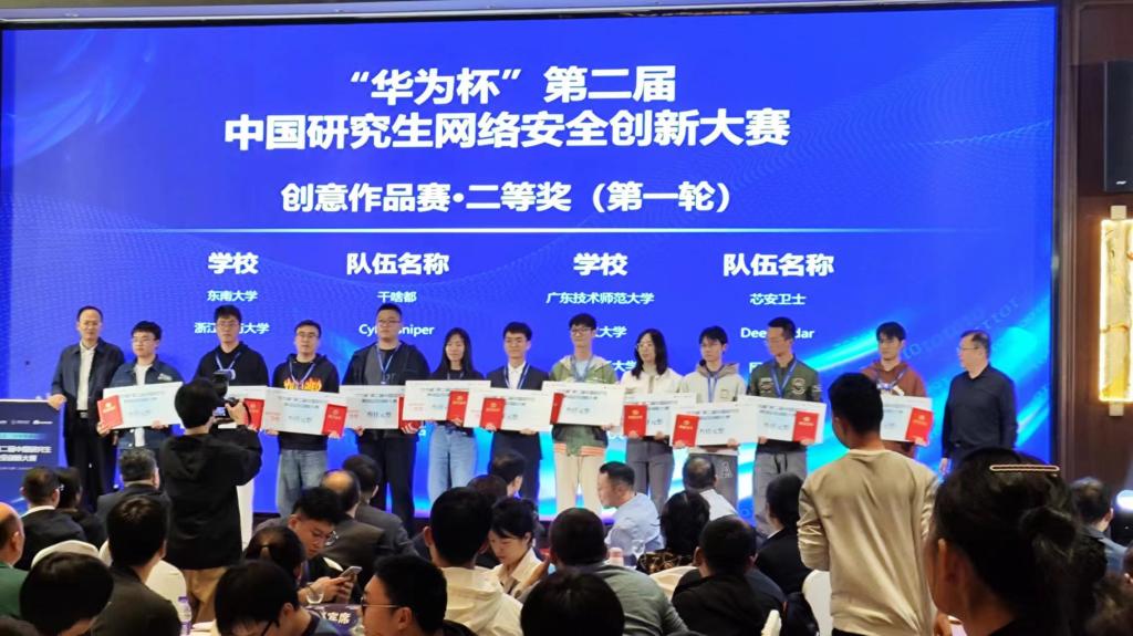 近日“华为杯”第二届中国研究生网络安全创新大赛在杭州落下帷幕。本届大赛于6月1日正式启动,共有来自全国153所高校或科研院所的670支队伍参赛。经过激烈的竞争,我院学子荣获全国二等奖2项。