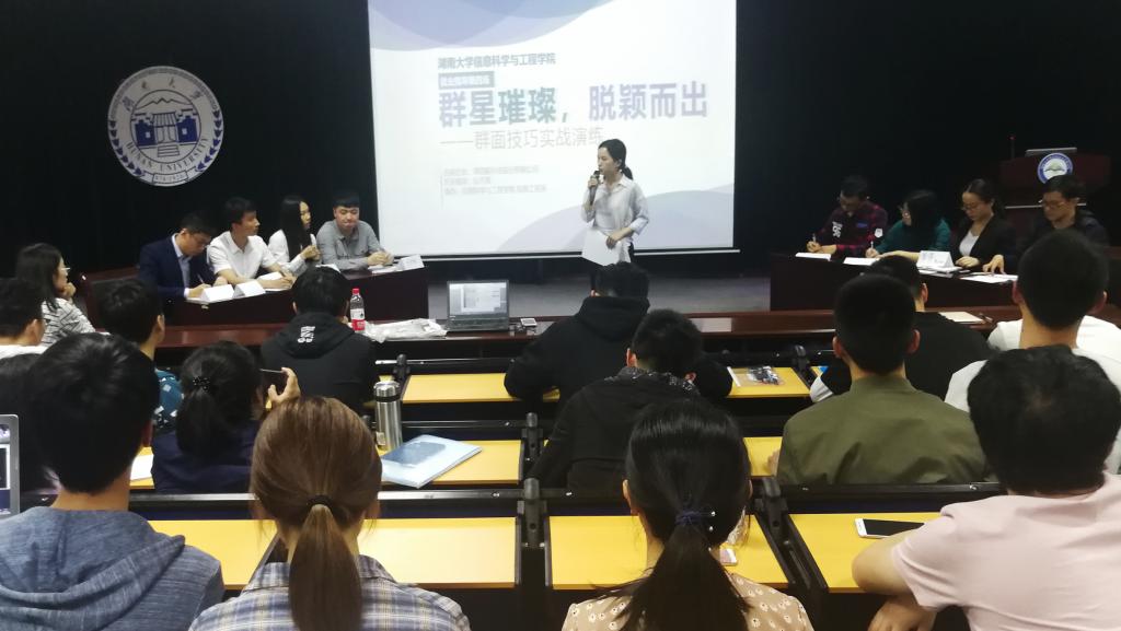 群面结束后,阮女士对队员的表现进行了客观专业的点评。既肯定了队员们在辩论中的礼仪和风度,这展现了湖大学子的风貌;也指出了团队分工和选取论据方面存在的问题。阮女士透露群面考察的是应试者“软件+硬件”综合素质,叮嘱同学们“面试技巧不如实战技巧,实战技巧不如知识积累”。