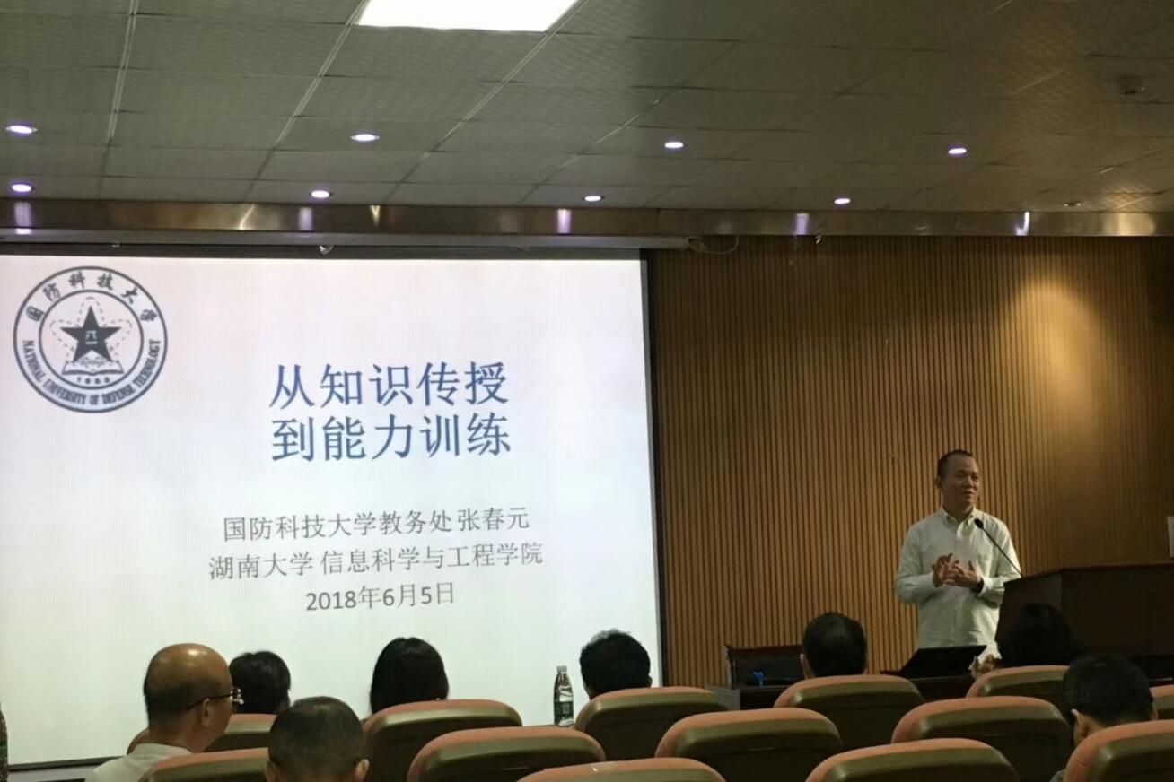 2018年6月5日,学院邀请了中国人民解放军国防科学技术大学教务处处长、计算机科学与技术专业博士生导师、国家工程教育认证领域认证专家张春元教授在信息院542报告厅作了题为“从知识传授到能力训练”的教学报告,学院全体老师参加了此次报告会。
