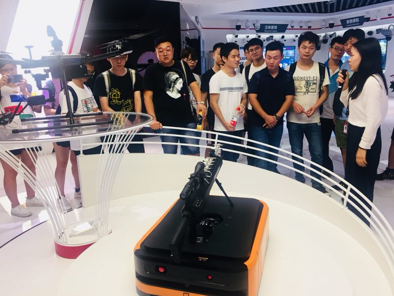 最后一站,未来科技城的人工智能小镇,以人工智能为特色,覆盖大数据、云计算、物联网等业态,集中力量招引机器人、智能可穿戴设备、无人机、虚拟/增强现实、新一代芯片设计研发等领域,浙大·阿里前沿技术研究中心、上海交大John Hopcroft计算机中心、浙江省智能诊疗设备制造业创新中心、中乌人工智能产业中心、北航虚拟现实/增强现实创新研究院、暾澜智慧谷、百度(杭州)创新中心、贝壳社等10个重大平台项目已经达成合作,同学们兴致勃勃地在科技展厅对部分研发展示的新产品进行了演示和体验。