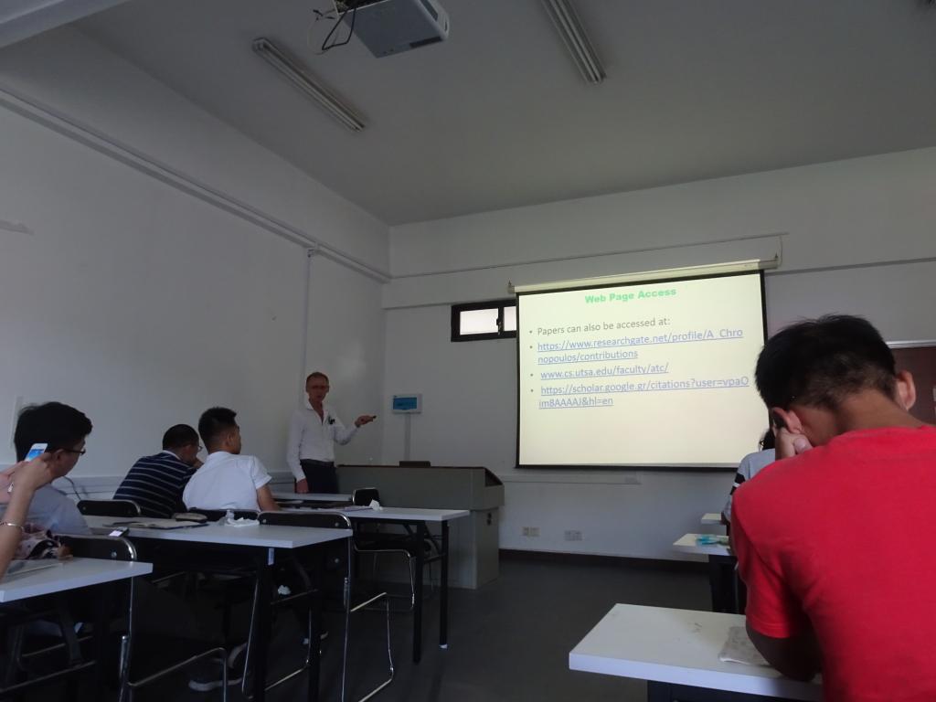 安东尼·西奥多·克罗诺普洛斯教授一连做了三场关于重要的计算机科学和工程主题的学术报告,如高性能计算中的调度和负载平衡, 基于游戏理论的负载平衡分配系统的工作分配,以及大数据应用的张量因式分解。