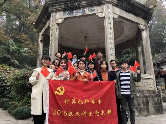 计算机科学系2016级本科生党支部在以张建民同志为领队,潘婷婷同志为副队的队伍带领下,来到了东方红广场的毛泽东雕像下,大家庄严肃穆,正气凛然。由袁纯楸同志作为领誓人,其余同志一同在毛泽东雕像下进行宣誓,重温入党誓词,大家声音嘹亮,似乎早上雾蒙蒙的长沙也被拨开了云雾一番。