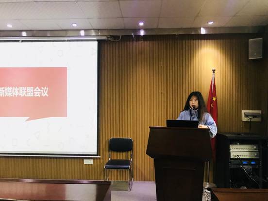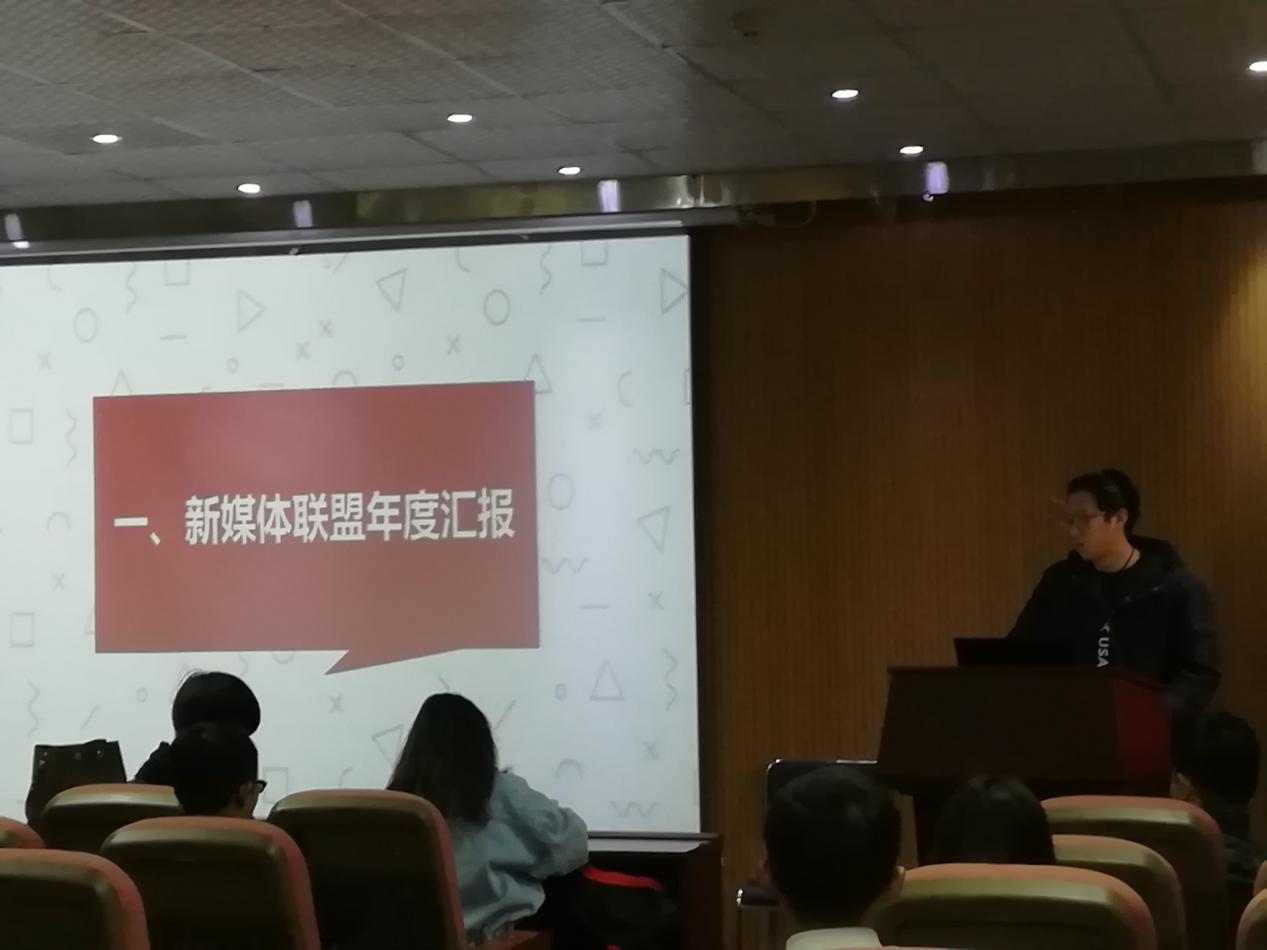 会议第一项,新媒体联盟四个分部门的部长分别上台发言,对本部门的职能、本年度工作总结、活动开展情况、下一年工作计划等方面做出详细的汇报及介绍。嘉宾和干事们认真听取报告,不时记录发言内容。