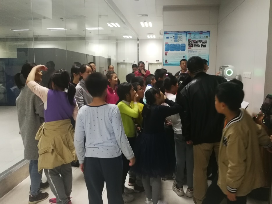 国家超级计算长沙中心参观,小朋友及老师首先来到超算中的一楼大厅参观,负责接待的老师给大家介绍长沙超算中心的基本情况,及中心目前承担的一些科研项目和应用成果。接着大家来到超算中心的3楼,参观天河超级计算机,专业老师还给大家演示了基于超算的人工智能医生,小朋友兴致勃勃的听着讲解,好奇的看着机器人医生是如何看病的。最后,大家来到了超算中的二楼报告厅,大同小学四甲班的师生和支部的10多名教师党员进行了现场交流,小朋友问了很多关于超级计算机的有趣的问题,老师们耐心的给予解答,现场气氛热烈。
