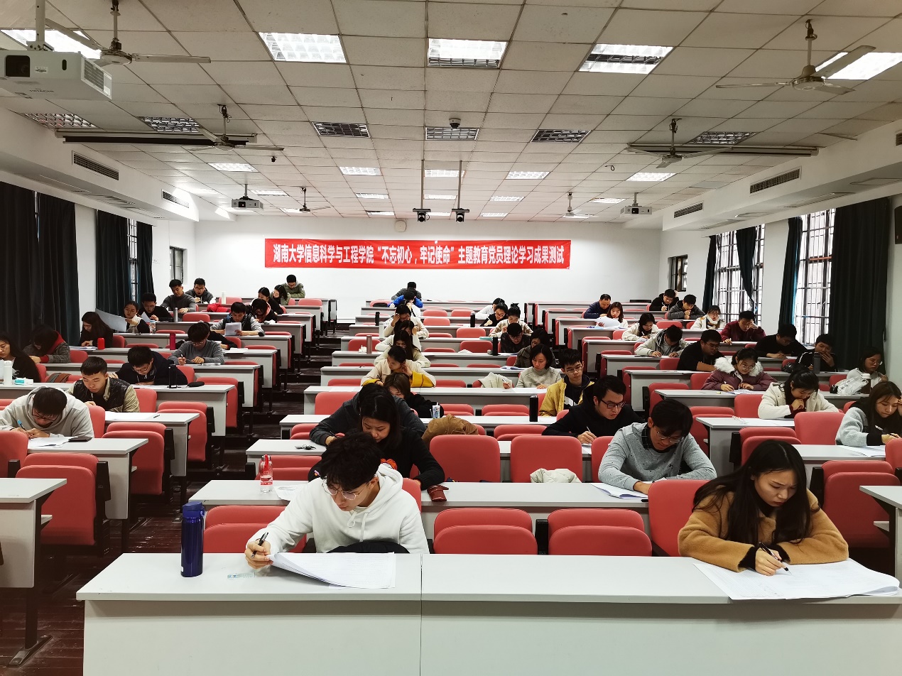 自主题教育开始以来,学院党委聚焦初心和使命,将学习教育贯穿始终,做到注重原原本本学、强化集中研讨学、促进融会贯通学,深入推动学习贯彻习近平新时代中国特色社会主义思想往深里走、往心里走、往实里走。本次测试作为学习教育成效评估的重要环节,在1个教职工考场和7个学生考场同时进行,学生党员为60分钟闭卷考试,测试内容来自《习近平关于“不忘初心、牢记使命”重要论述选编》、《习近平新时代中国特色社会主义思想学习纲要》、《中国共产党第十八届中央委员会第四次全体会议公报》、十九大报告、党章及党的基本知识等,共计144名教职工党员、445名学生党员参试。