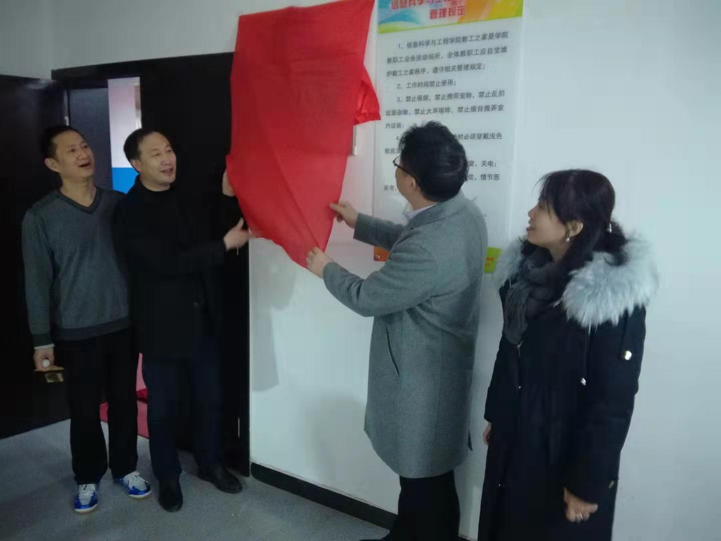 龚完全副主席和杨忠旺书记共同为学院“教工之家”揭牌。龚完全在讲话中指出,学校工会在校党委的领导和支持下,紧紧围绕学校中心工作,在职工文化建设、体育竞赛等方面开展了丰富多彩的活动;此次信科院“教工之家”正式投入使用,为完善学院工会组织,丰富学院职工活动提供了平台;希望努力把工会组织建设地更加充满活力、更加坚强有力、更加符合职工的期望。