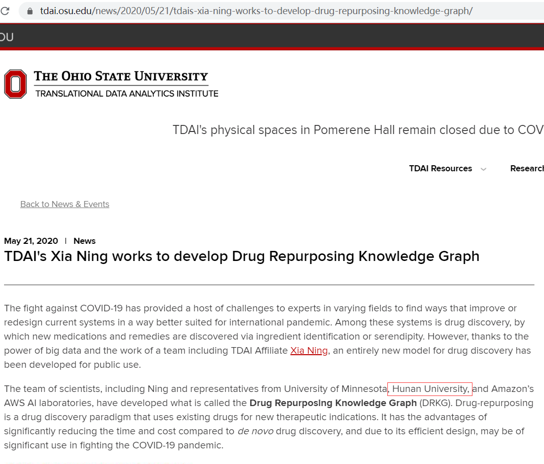 俄亥俄州立大学关于我校和该校Xia Ning团队合作的报道
