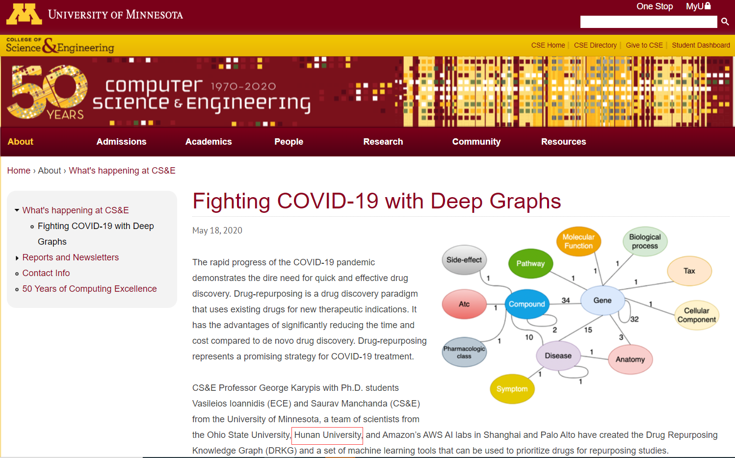 明尼苏达大学关于我校和该校George Karypis团队合作的报道