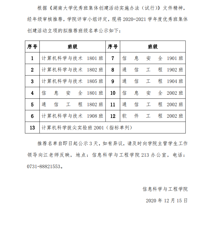 中文黄色网站 2020-2021 学年度优秀班集体 创建活动立项推荐名单