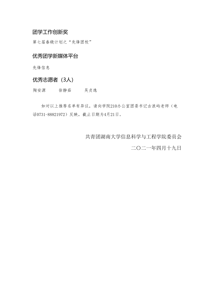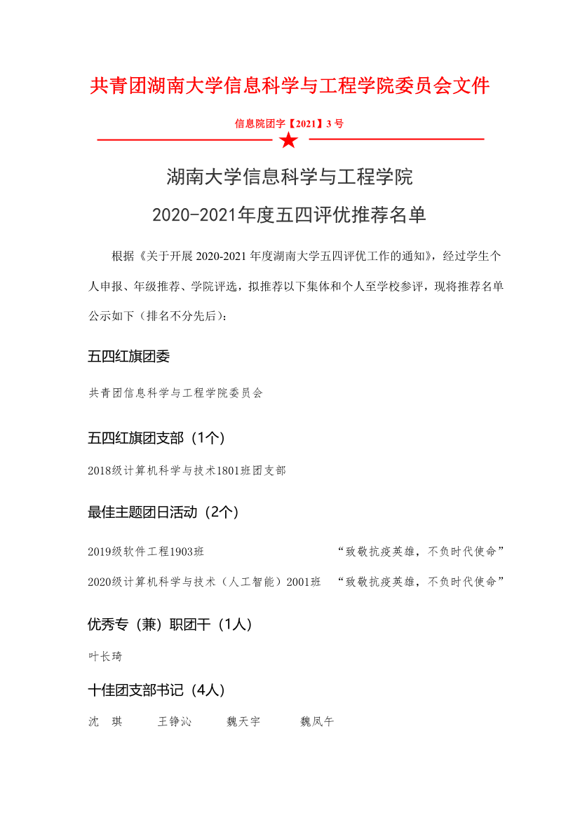 中文黄色网站 2020-2021年度五四评优推荐名单公示