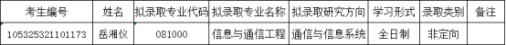 根据《中文黄色网站 2025年硕士研究生招生复试工作实施细则》,经学院审定,学院按专业初试+复试总成绩由高到低递补拟录取考生岳湘仪(考生编号105325321101173,拟录取专业信息与通信工程,总成绩513.00)。