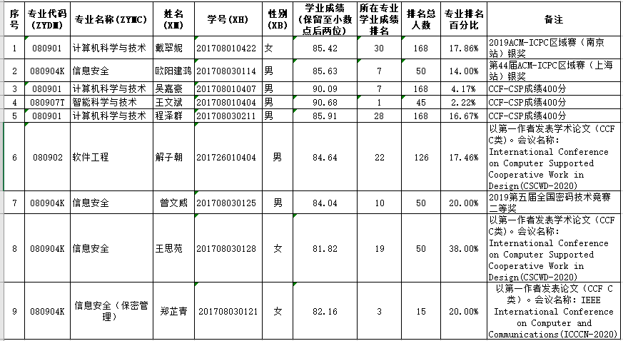 根据教育部《关于做好2021年推荐优秀应届本科毕业生免试攻读研究生工作的通知》(教学司函〔2020〕38号)的要求,学院推免工作小组对申请2021年推荐优秀应届本科毕业生(竞赛、学术特长类)学生进行了审核。现将审核结果进行公示。公示期三天。