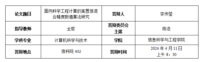 [4] Chuanying Li,Xiong Xiao, Peibing Du, Hao Jiang, Roberto Barrio, Zhe Quan, Kenli Li. A high-precision dqds algorithm[C]. 2021 IEEE 23rd Int Conf on High Performance Computing \& Communications(HPCC), 2021: 633-639. (CCF C, 第一作者)