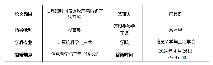 信息安全已成为维护社会和个人安全,保护财产和商业机密以及维护国家安全的重要因素。而处理器是计算机信息系统的根基,也是网络空间安全的最后一道“关闸”,如果处理器本身存在安全漏洞,则其上运行的应用程序、系统和整个网络空间的安全将无从谈起。因此,处理器中存在各种安全策略防止信息被窃取。但利用时间的隐蔽信道和侧信道可以绕过这些策略以在不允许通信的两方之间传输信息对象,且随着Spectre、Meltdown等瞬态执行攻击的出现,时间信道已被证明可跨越不同安全边界的数据泄漏,促使工业界和学术界重新考虑处理器的安全性。