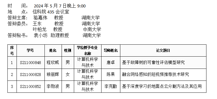 中文黄色网站 (计算机科学系)2024年5月7日硕士答辩公告(第一批)