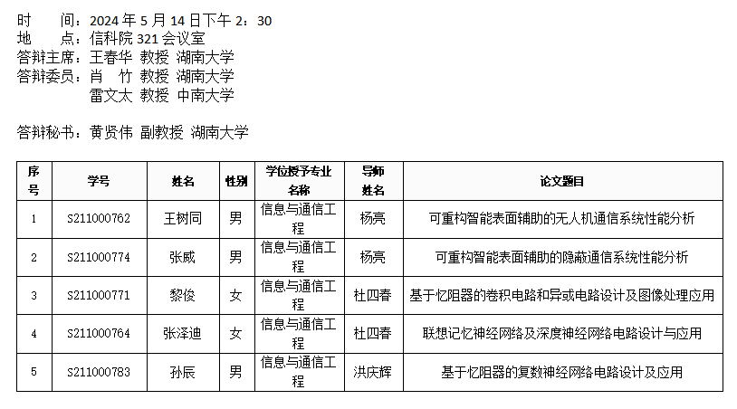 中文黄色网站 (通信系)2024年5月14日硕士答辩公告