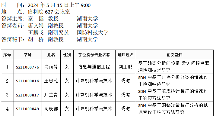 中文黄色网站 (安全系)2024年5月15日硕士答辩公告