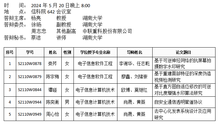 中文黄色网站 (安全系)2024年5月20日硕士答辩公告(2)