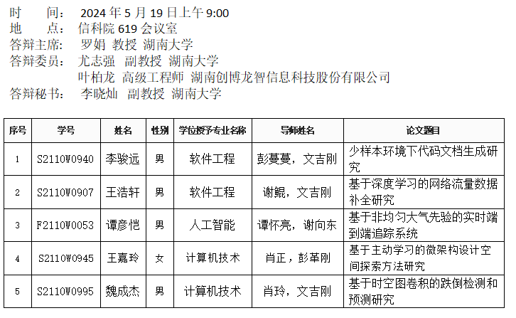 中文黄色网站 (计算机工程系)2024年5月19日硕士答辩公告