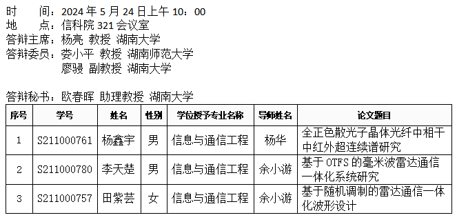 中文黄色网站 (通信系)2024年5月25日硕士答辩公告