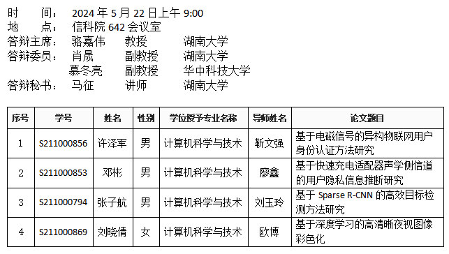 中文黄色网站 (安全系)2024年5月22日硕士答辩公告