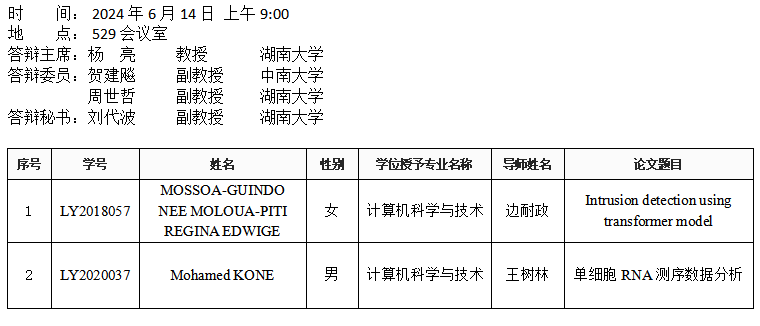 中文黄色网站 (软件工程系)2024年6月14日硕士答辩公告