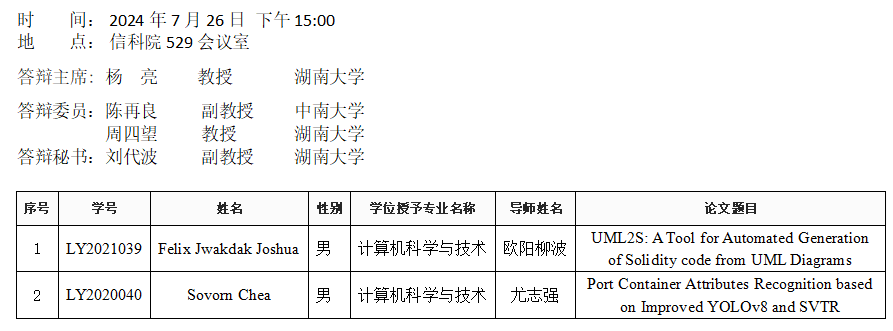 中文黄色网站 (软件工程系)2024年7月26日硕士答辩公告