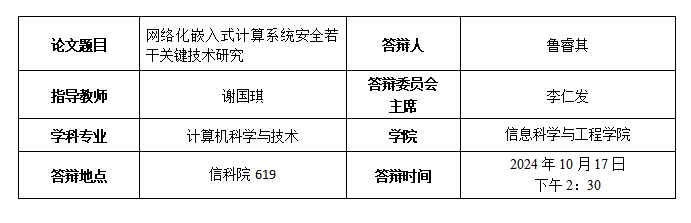 [7] 谢国琪,鲁睿其,黄爽. 基于汽车CAN-FD网络的信息安全通信方法. 申请公布号 CN 114945169 A。(发明专利,学生中排名第一)
