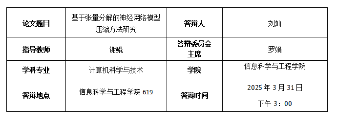 [1] Kun Xie, Can Liu, Xin Wang, Xiaocan Li, Gaogang Xie, Jigang Wen. Neural Network Compression Based on Tensor Ring Decomposition [J]. IEEE Transactions on Neural Networks and Learning Systems (TNNLS), 2024: 1-15. (SCI一区, 导师第一作者)