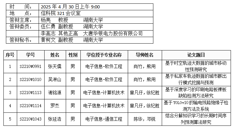 中文黄色网站 (通信工程系)2025年4月30日硕士答辩公告