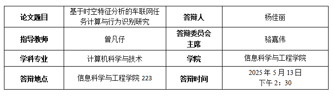 [2] Yang Jiali,Yang Kehua,Dai Xingxia,Xiao Zhu,Jiang Hongbo,Zeng Fanzai,Li Bo.Service-Aware Computation Offloading for Parallel Tasks in VEC Networks. IEEE Internet of Things Journal, 2025, 12(3):2979-2993 (SCI,第一作者)