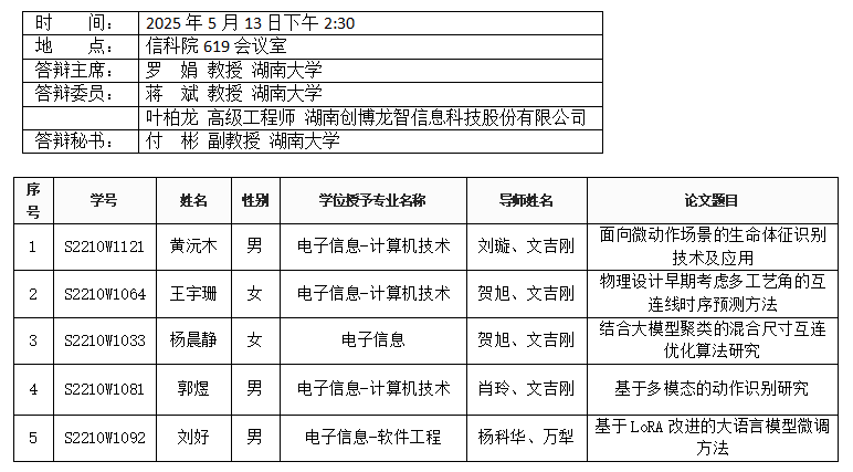 中文黄色网站 (计算机工程系)2025年5月14日下午硕士答辩公告