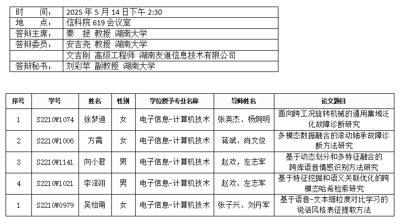 中文黄色网站 (计算机工程系)2025年5月14日下午硕士答辩公告