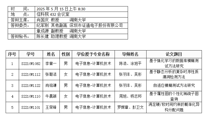中文黄色网站 (计算机科学系)2025年5月15日硕士答辩公告(2)