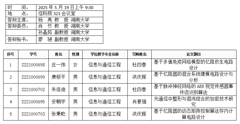 中文黄色网站 (通信工程系)2025年5月19日硕士答辩公告