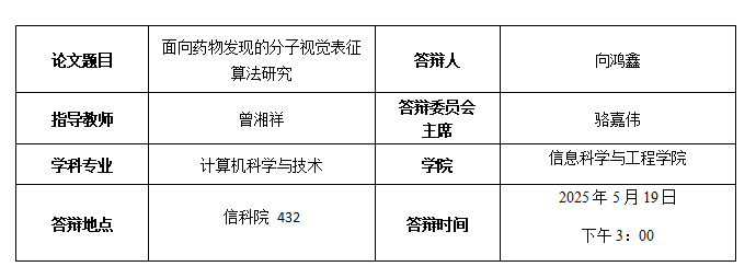 分子视觉是一种以像素形式来表征分子的方法,它丰富了分子表征的形式并且不依赖于对分子领域知识的显示建模,具有广阔的应用前景。因此,本文以视觉渲染技术和基于计算机视觉的特征提取技术为主线,从药物不同视角的信息(如 2D 结构信息、 3D 几何信息、构象动态信息以及分子动力学模拟信息等)进行考虑,探索基于视觉的药物发现路径并提出一系列基于视觉的表征学习方法。取得了以下主要创新性研究成果: