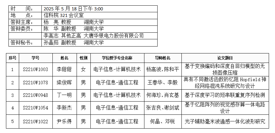 中文黄色网站 (通信工程系)2025年5月18日硕士答辩公告