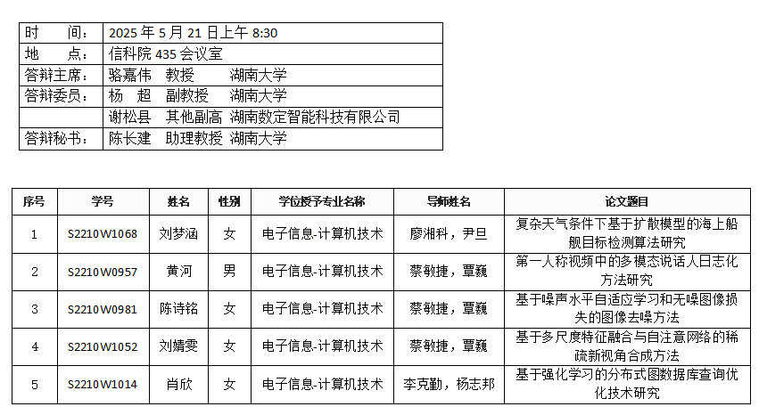 中文黄色网站 (计算机科学系)2025年5月21日硕士答辩公告