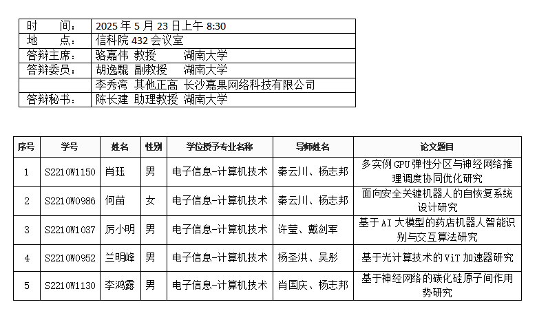 中文黄色网站 (计算机科学系)2025年5月21日硕士答辩公告