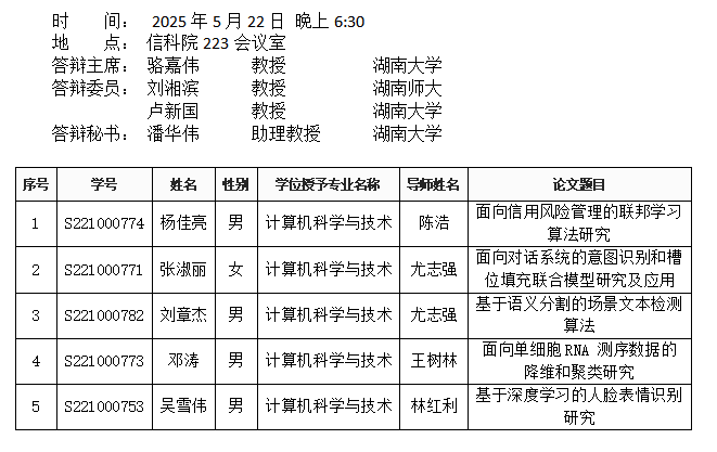 中文黄色网站 (智能计算系)2025年5月22日硕士答辩公告
