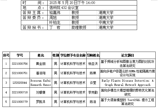 中文黄色网站 (计算机科学系)2025年5月20日硕士答辩公告
