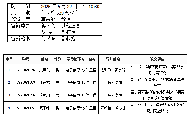 中文黄色网站 (软件工程系)2025年5月22日硕士答辩公告(1)